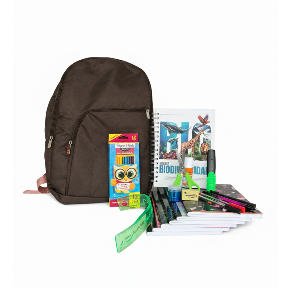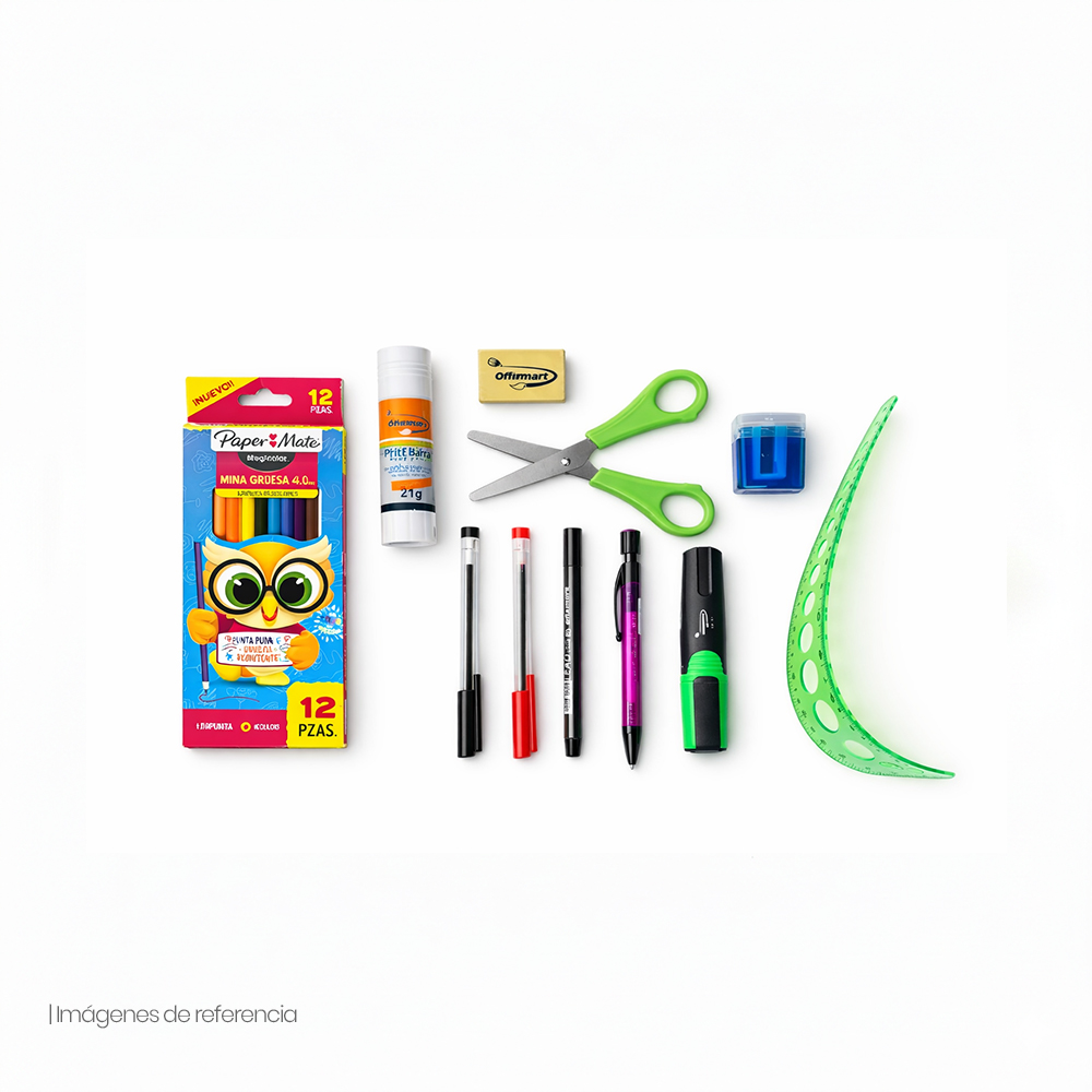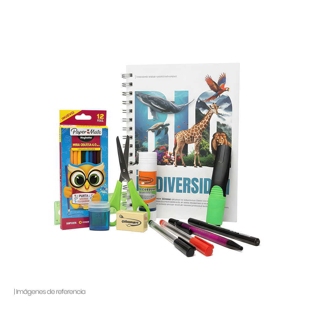 Prepárate para el regreso a clases con este Kit Escolar Completo, ideal para estudiantes que necesitan todos sus implementos básicos en un solo paquete. Con opción de maleta + útiles o solo útiles. Esencial para el día a día escolar.