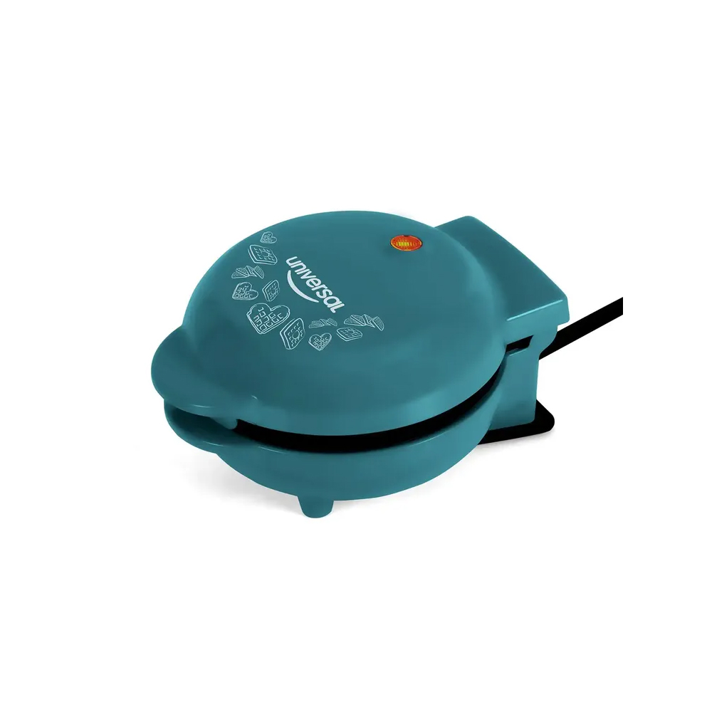 La Mini Waflera UNIVERSAL Azul Turquesa es tu aliada perfecta para crear waffles caseros de manera rápida, práctica y sin complicaciones. Su diseño compacto y ligero facilita su transporte y almacenamiento en cualquier cocina, apartamento o espacio pequeño.